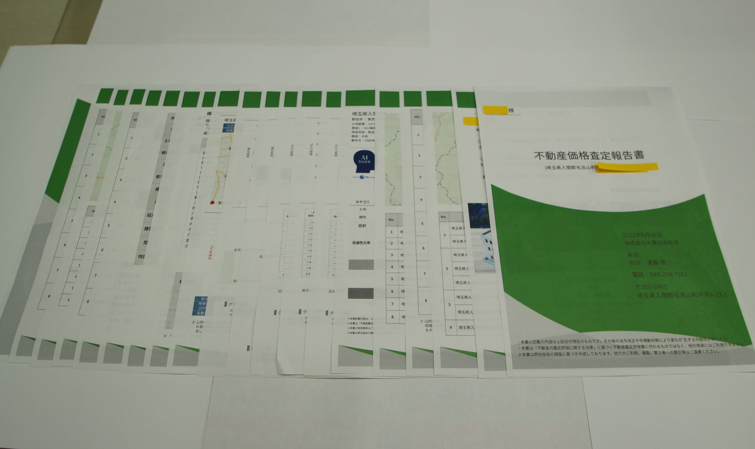 入間郡毛呂山町の中古住宅や土地|株式会社丸善住宅販売 > 株式会社丸善住宅販売のスタッフブログ記事一覧 > 弊社の査定書